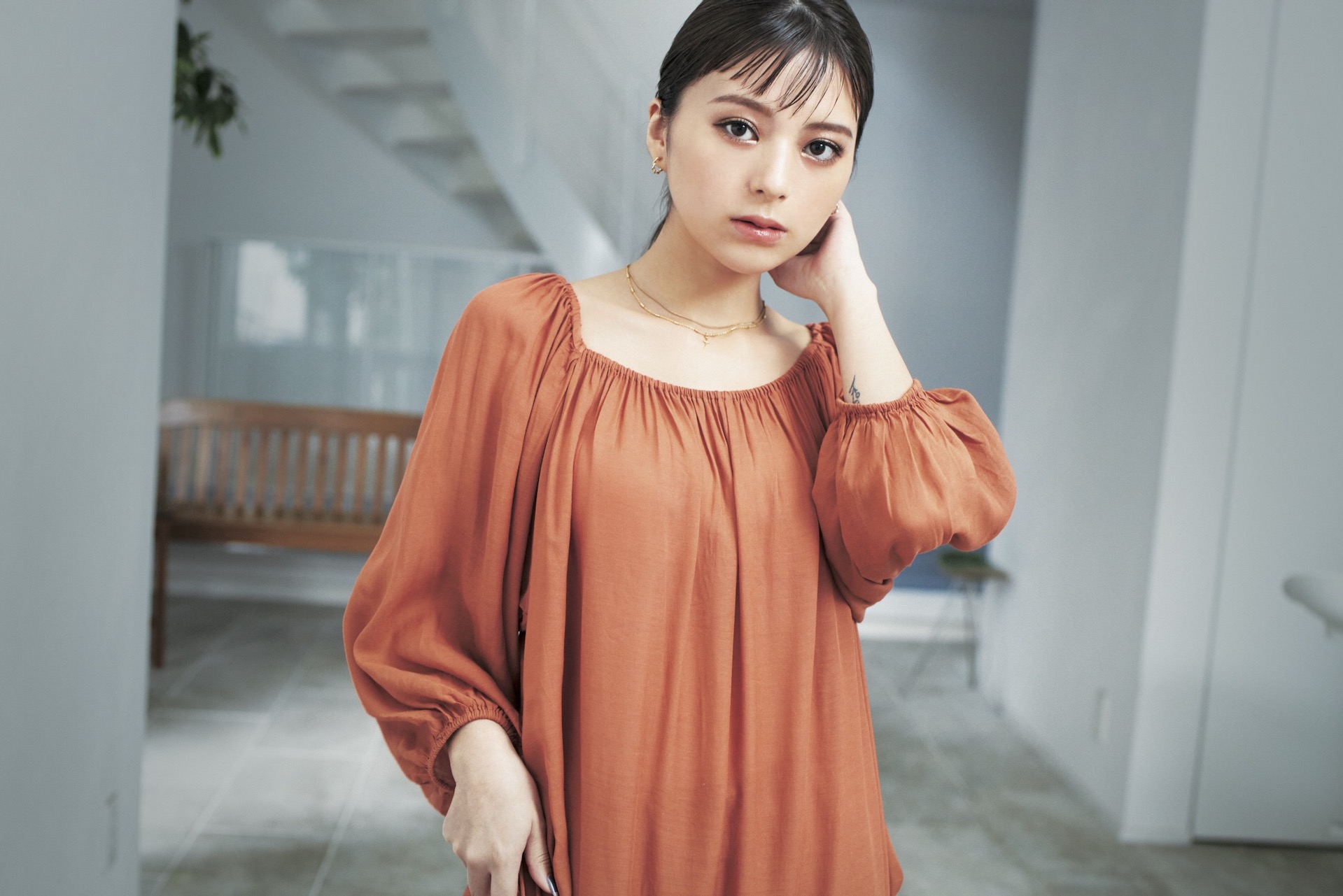 ワンピース¥18,000(ALEXIA STAM/EXJ)、 ネックレス¥2,500(EVRIS/エヴリス 渋谷109店)、ピアス<スタイリスト私物>
